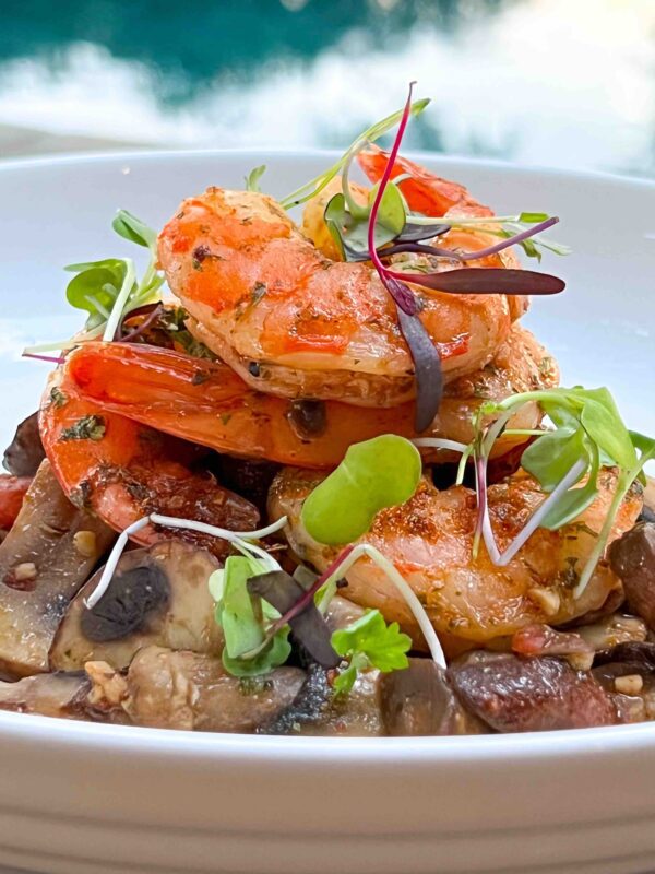 1- Put olive oil in a skillet and add minced garlic. Cook until fragrant for 2 minutes.2- Add diced tomatoes and sliced mushrooms. Cook for 10 minutes stirring occasionaly over medium heat.3- Add shrimps,seafood spice blend,salt and pepper. Continue cooking for 5 more minutes.4- Remove from the heat. Transfer to a serving plate. Garnish with microgreens.Bon Appetit!